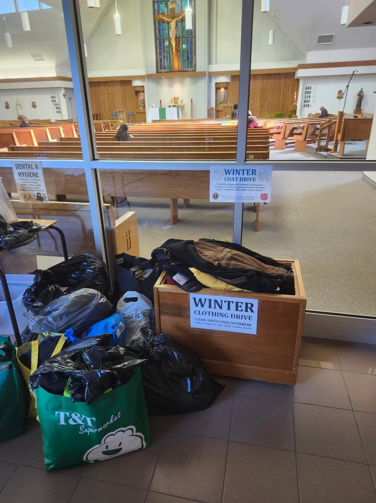 Winter clothing drive – St. Mark council organizes the annual winter clothing drive in the Parish. Each November and December, parishioners donate winter clothing which is then passed on to the Salvation Army. In 2023, over nine large bags of clothing were donated from St. Mark Parish.