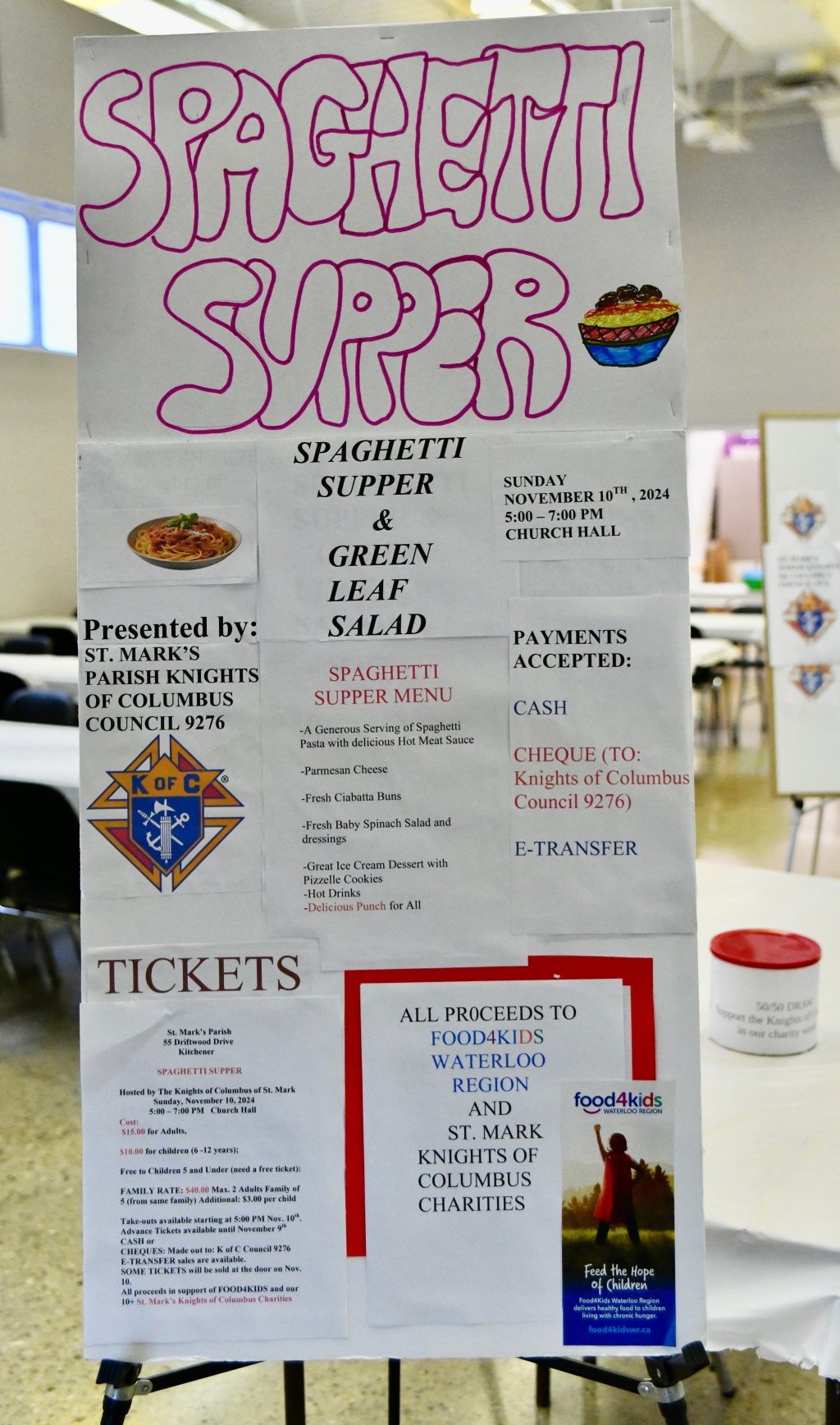 Spaghetti dinner – another sell out! A great time was had by all at our annual Spaghetti Dinner, held in November 2023. Over 150 attended this event, and the Knights received great feedback from the Parish! $1,000.00 was donated to Food4Kids, from the proceeds of the dinner. Looking forward to the 2024 event!